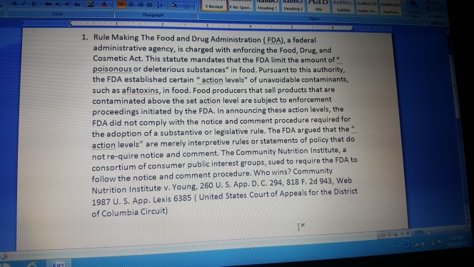 Solved Rule Making The Food And Drug Administration Fda A Chegg Com